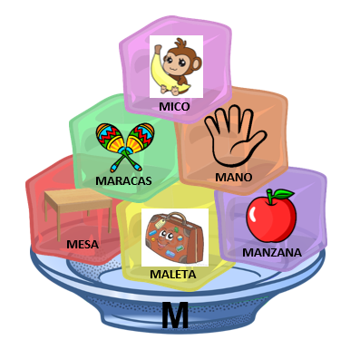 encontrará dos platos cada uno con una letra donde el niño deberá organizar con ayuda del